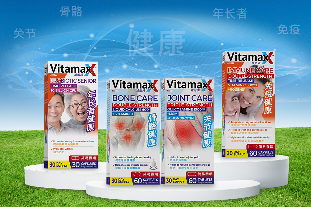 With the growing aging population in Singapore and the world, VitamaxX was developed to target the elderly (50+ years of age) to provide functional supplements that will help improve the quality of life for people as they age.
