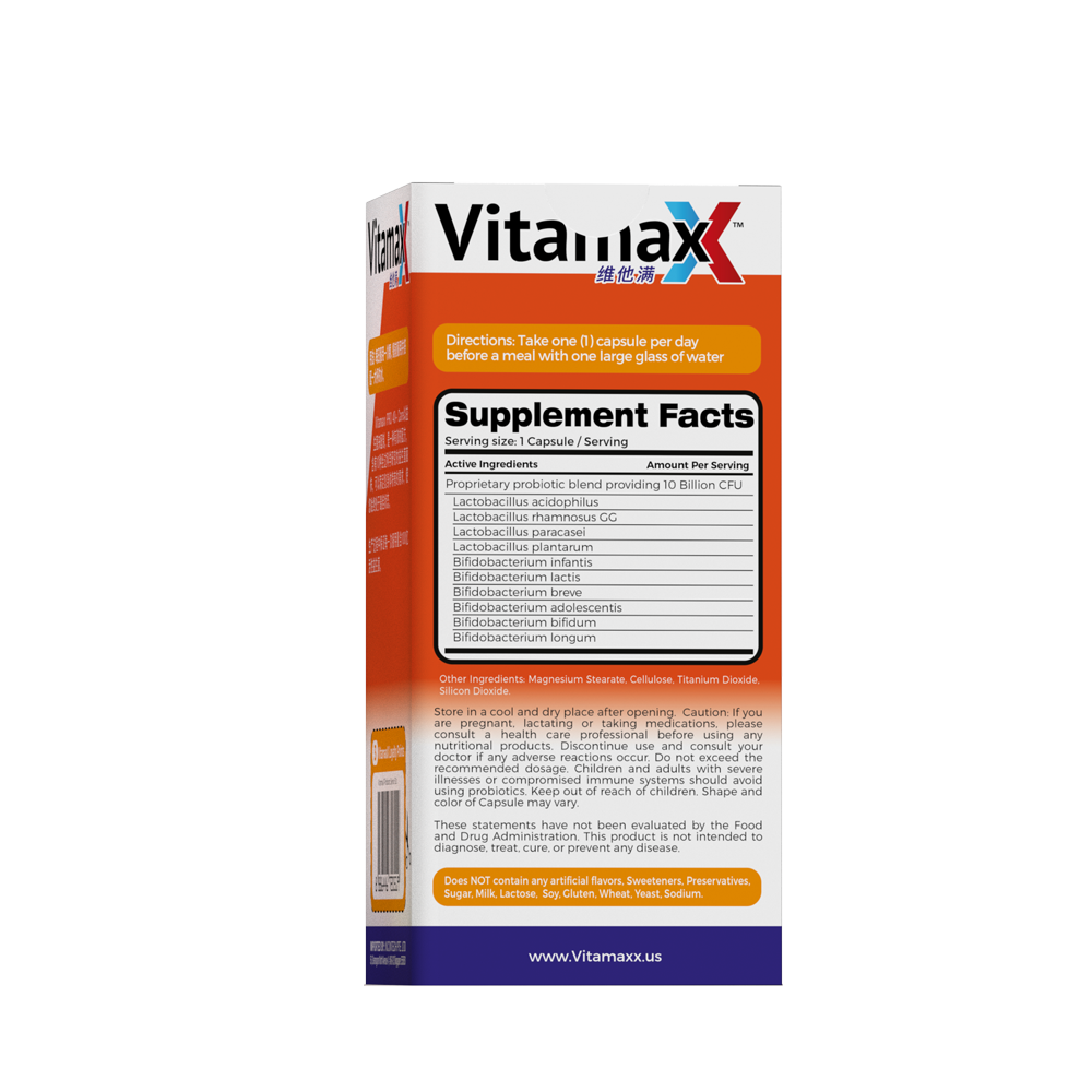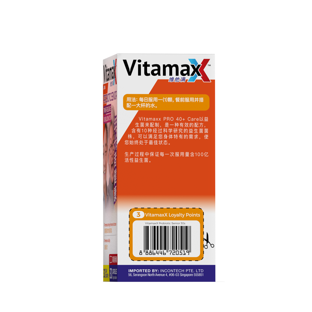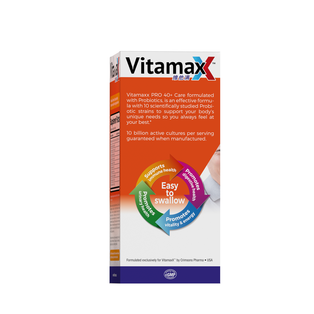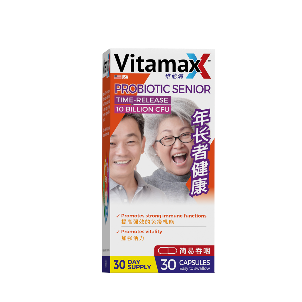Vitamaxx Probiotic Senior Care formulated with Probiotics, is an effective formula with 10 scientifically studied Probiotic strains to support your body’s unique needs so you always feel at your best.*